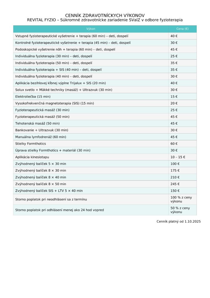 V ambulancii REVITAL vás privítame v modernej fyzioterapeutickej ambulancii zameranej na liečbu pohybového aparátu.
